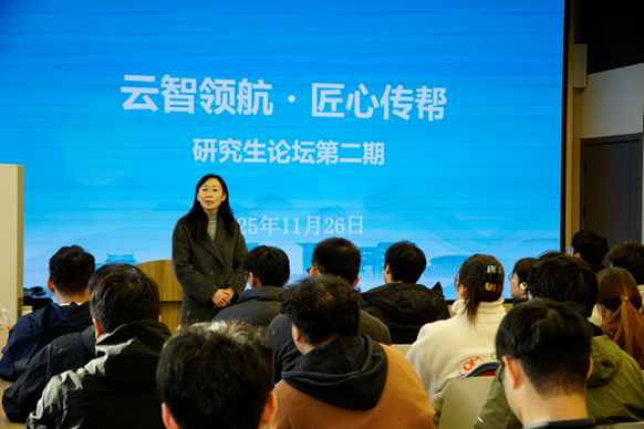 11月26日,智能工程学院“云智领航研究生论坛”第二期活动在人工智能研究院412会议室如期举行。本次论坛延续“研途领航・经验相传” 的核心宗旨,聚焦研究生职业规划与学术深造两大核心需求,特别邀请智能工程学院机械系系主任丛锦玲老师莅临现场开展专题宣讲,以自身丰富的人生阅历为学子们答疑解惑、指引方向。活动由学生科辅导员王伟楠主持。